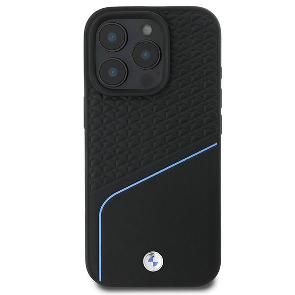 Carcasa BMW Signature Leather Textured Line cu MagSafe compatibila cu iPhone 16 Pro, Negru