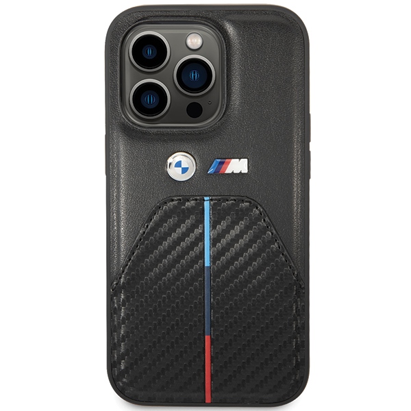 Carcasa BMW Stamped Tricolor Stripe compatibila cu iPhone 14 Pro, Negru Cod produs: BMW-171084