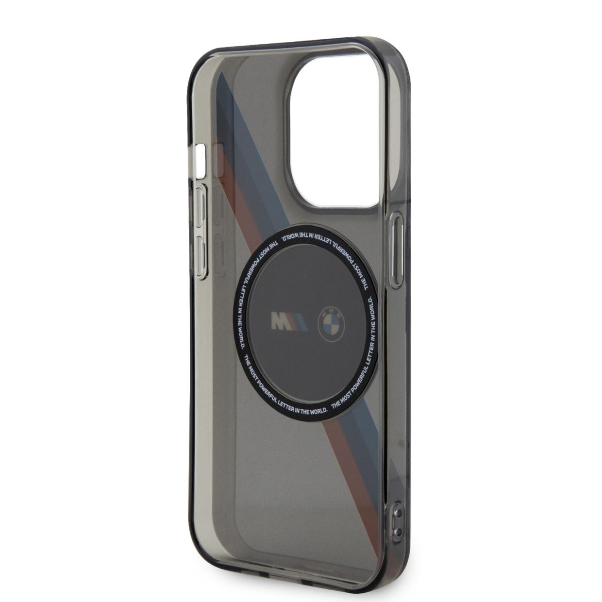 Carcasa BMW Tricolor Stripes cu MagSafe compatibila cu iPhone 14 Pro, Negru