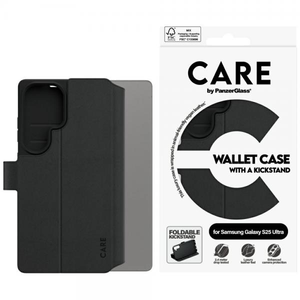 Carcasa flip cover CARE by PanzerGlass Feature Wallet Kickstand compatibila cu Samsung Galaxy S25 Ultra, Negru