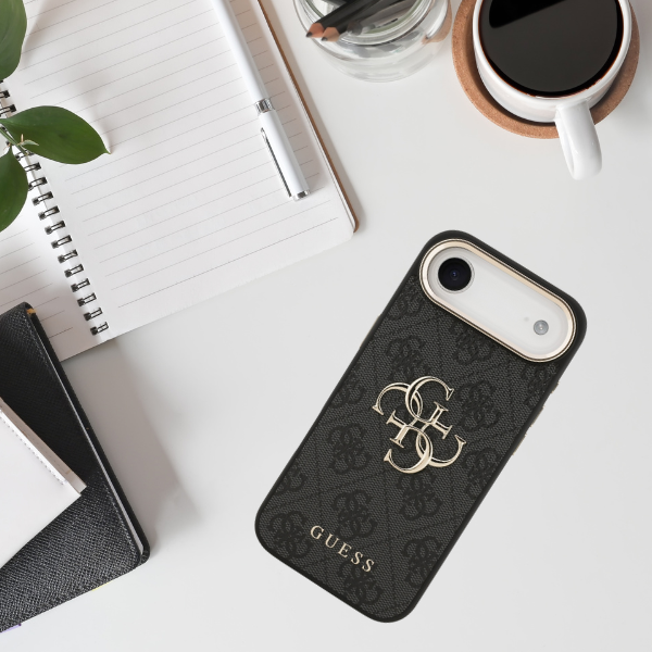 Carcasa este fabricată din eco-piele de înaltă calitate cu o suprafață texturată, completată de marele simbol legendar 4G și logo-ul metalic Guess logo. În plus, întreaga carcasă este decorată cu un elegant și subtil model de monogramă 4G repetat pe întreaga sa suprafață, oferindu-i un caracter unic și recognoscibil.