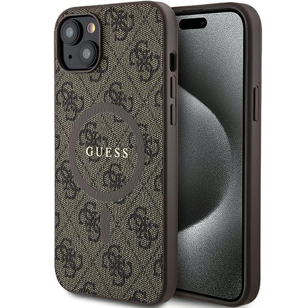 Carcasa Guess 4G Collection Leather Metal Logo cu MagSafe compatibila cu iPhone 13 / 14 / 15, Maro Cod produs: GUE-173279