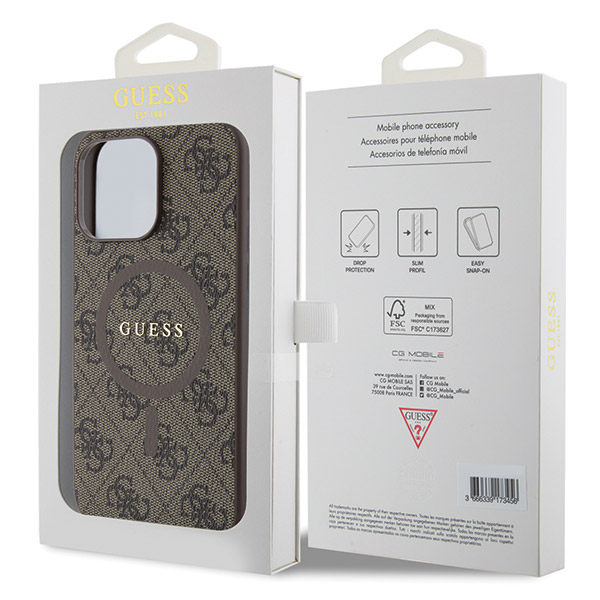 Carcasa Guess 4G Collection Leather Metal Logo cu MagSafe compatibila cu iPhone 15 Pro Max, Maro Cod produs: GUE-170938