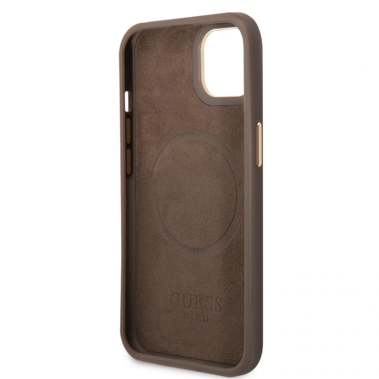 Carcasa Guess 4G Logo Plate cu MagSafe compatibila cu iPhone 13 / 14 / 15, Brown Cod produs: GUE-173314