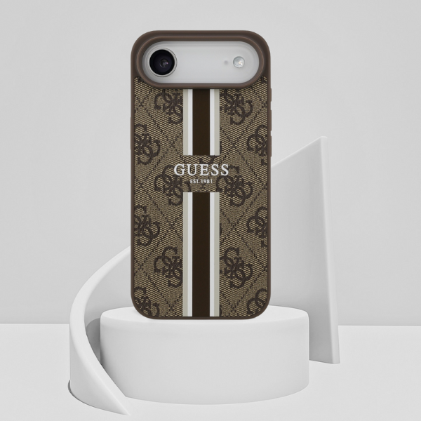Carcasa Guess 4G Printed Stripes cu MagSafe compatibila cu iPhone 17 Air, Maro
