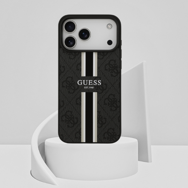 Carcasa Guess 4G Printed Stripes cu MagSafe compatibila cu iPhone 17 Pro Max, Negru