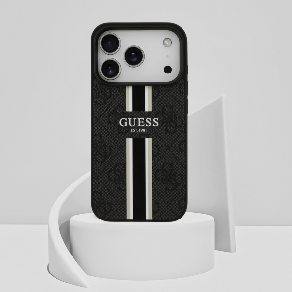 În secțiunea centrală a husei, se află logo-ul Guess și dungi albe, care subliniază subtil prestigiul acestei huse.