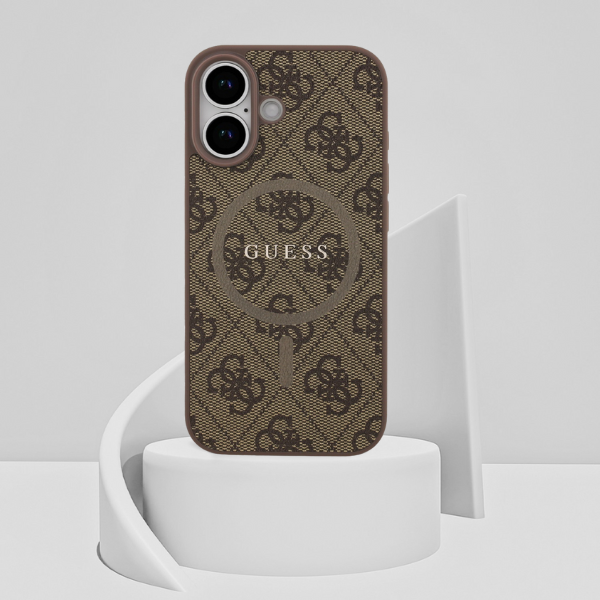 Husa de protecție exclusivă de la renumitul brand Guess este o combinație de eleganță și stil la cel mai înalt nivel. Husa este acoperită cu piele ecologică de înaltă calitate, cu un model distinctiv 4G și un inel MagSafe.