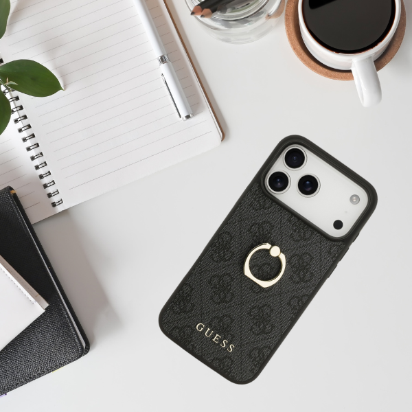 Carcasa Guess 4G Ring Stand compatibila cu iPhone 17 Pro Max, Negru
