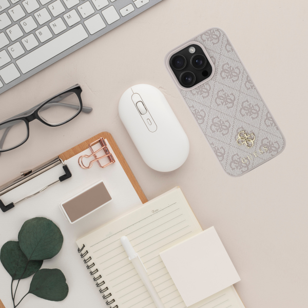 În partea de jos a husei, veți găsi logo-ul Guess și o insignă aurie 4G, subliniind subtil prestigiul acestei huse.