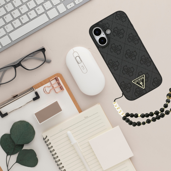 Întregul set este completat de o curea cu mărgele de bun gust, care se potrivește perfect cu schema de culori a husei. Literele de pe mărgele formează cuvântul „GUESS”, făcând acest accesoriu nu doar practic, ci și extrem de stilat.