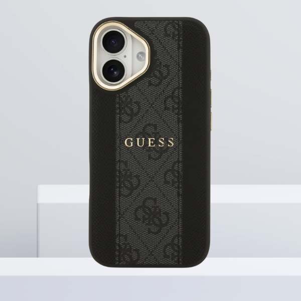 Husa de protecție exclusivă de la renumitul brand Guess este o combinație de eleganță și stil la cel mai înalt nivel. Suprafața husei este acoperită cu o elegantă eco-piele, îmbogățită cu o bandă centrală cu modelul caracteristic 4G.