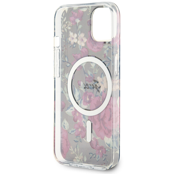 Logo-ul vintage auriu Guess și inelul MagSafe vor atrage atenția și vor sublinia estetica rafinată a husei. Husele din colecția Flower MagSafe vor oferi un aspect la modă și vor deveni un accesoriu unic pentru femeile care le place să iasă în evidență din mulțime și apreciază accesoriile exclusive.
