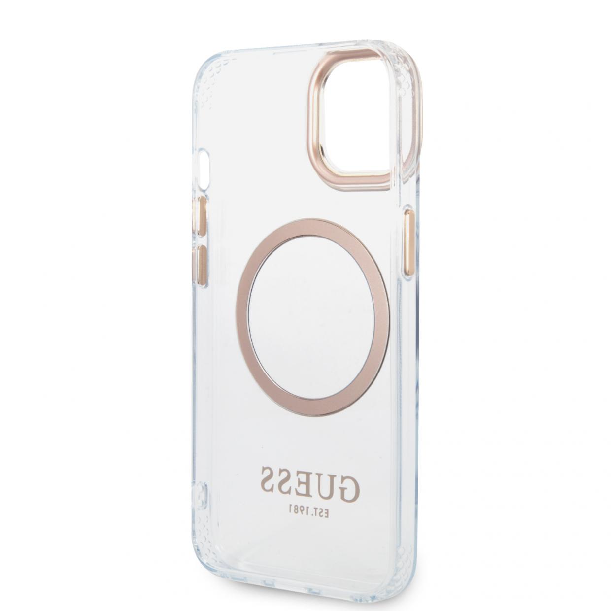 Carcasa Guess Gold Metal Outline compatibila cu iPhone 14 Plus / 15 Plus, Transparent