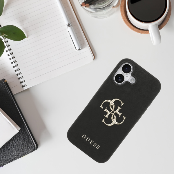 Întregul design este împodobit cu o impresionantă emblemă metalică 4G de culoare aurie și un subtil logo Guess, subliniind prestigiul accesoriului.