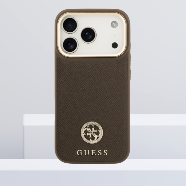Carcasa Guess Grained Strass Logo cu MagSafe compatibila cu iPhone 17 Pro, Maro Cod produs: GUE-166886