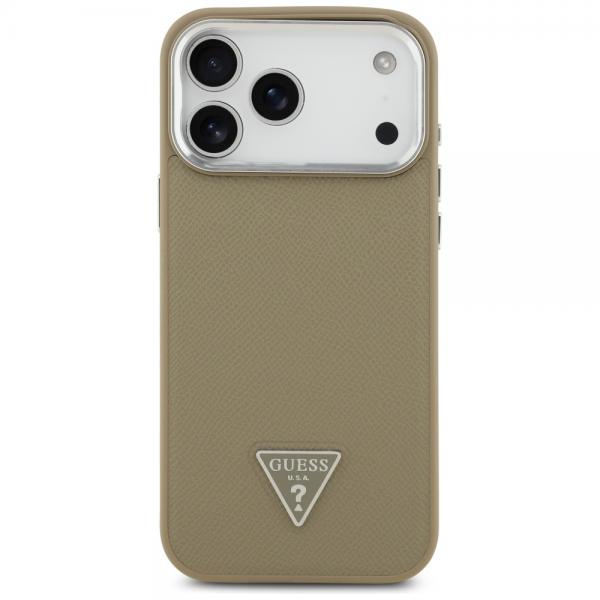 Carcasa Guess Grained Triangle Logo cu MagSafe compatibila cu iPhone 17 Pro, Maro