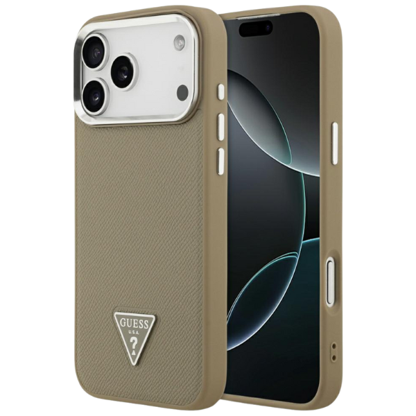Carcasa Guess Grained Triangle Logo cu MagSafe compatibila cu iPhone 17 Pro, Maro Cod produs: GUE-166189