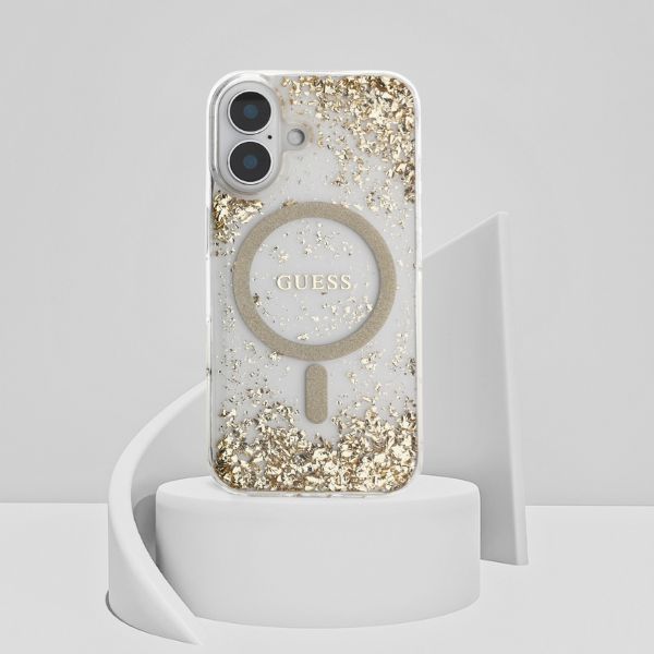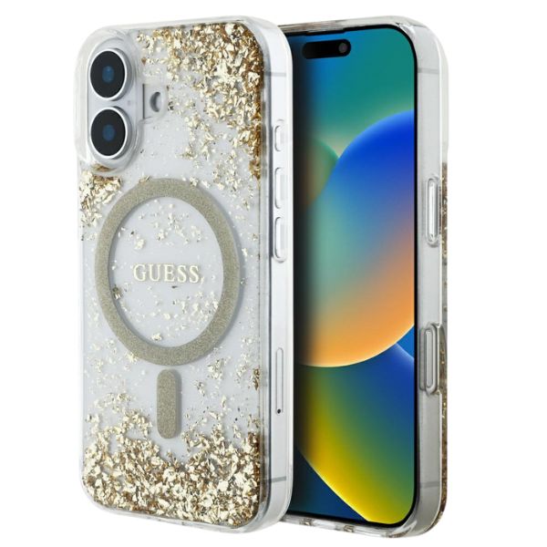 Carcasa Guess HC Resin Bottom Glitter cu MagSafe compatibila cu iPhone 16, Gold Cod produs: GUE-166354