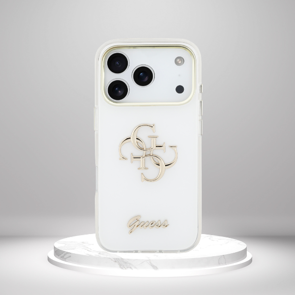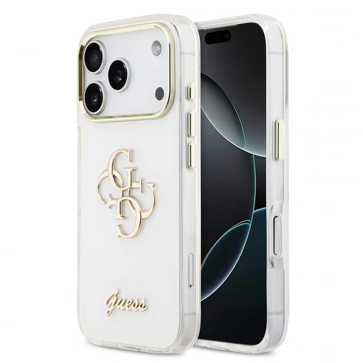 Carcasa Guess IML 4G Script Metal compatibila cu iPhone 17 Pro Max, Alb Cod produs: GUE-177560