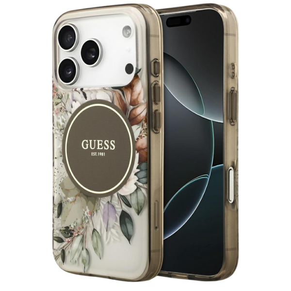 Carcasa Guess IML Flower Tonal Circle cu MagSafe compatibila cu iPhone 17 Pro, Maro