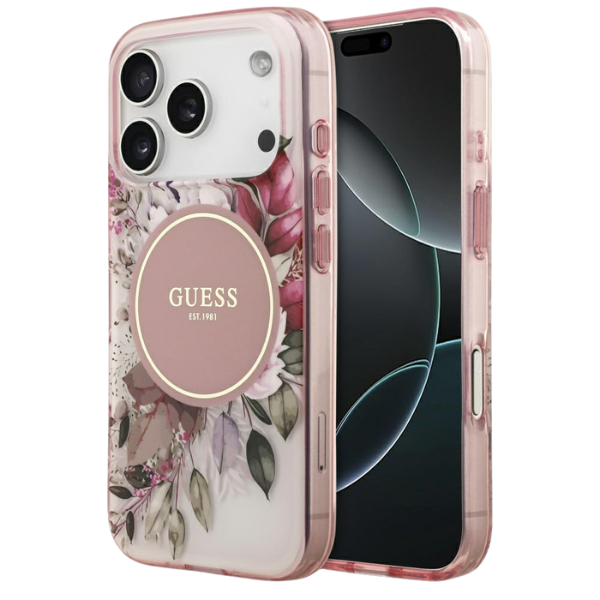Carcasa Guess IML Flower Tonal Circle cu MagSafe compatibila cu iPhone 17 Pro Max, Roz Cod produs: GUE-166774