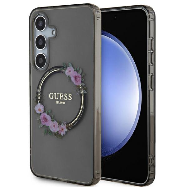 Carcasa Guess IML Flowers Wreath cu MagSafe compatibil cu Samsung Galaxy S24, Negru