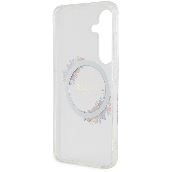 Carcasa Guess IML Flowers Wreath cu MagSafe compatibil cu Samsung Galaxy S24, Transparent