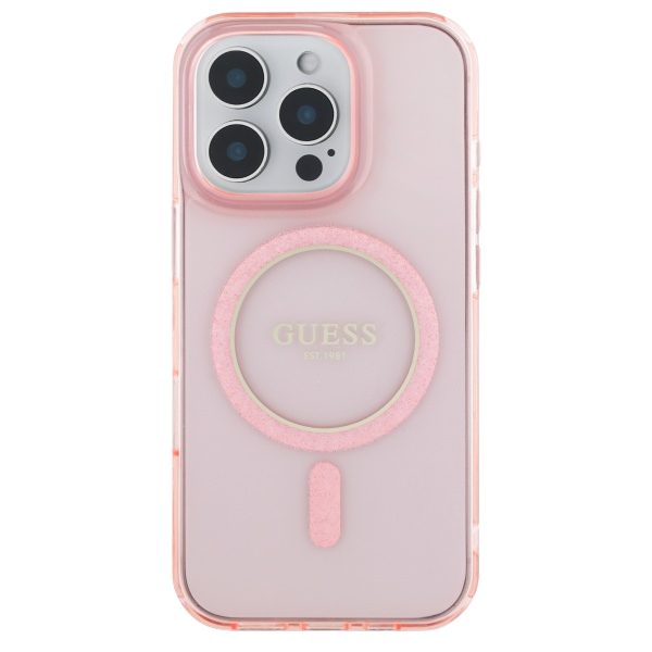Carcasa Guess IML Glitter Circle MagSafe compatibila cu iPhone 16 Pro, Roz Cod produs: GUE-170959