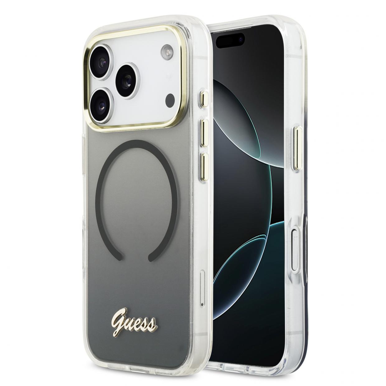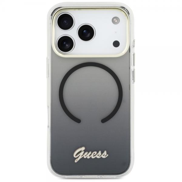 Carcasa Guess IML Gradient Script Metal cu MagSafe compatibila cu iPhone 17 Pro, Negru