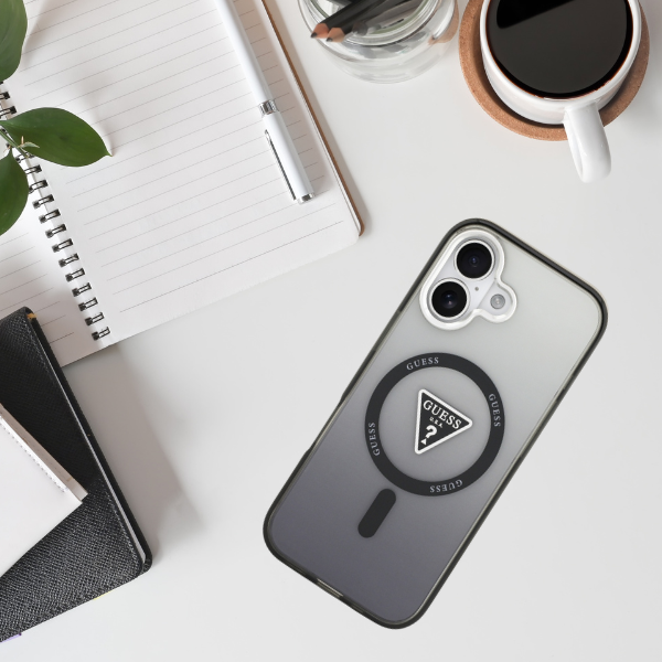 Carcasa Guess IML Gradient Triangle Logo cu MagSafe compatibila cu iPhone 17, Negru Cod produs: GUE-166816