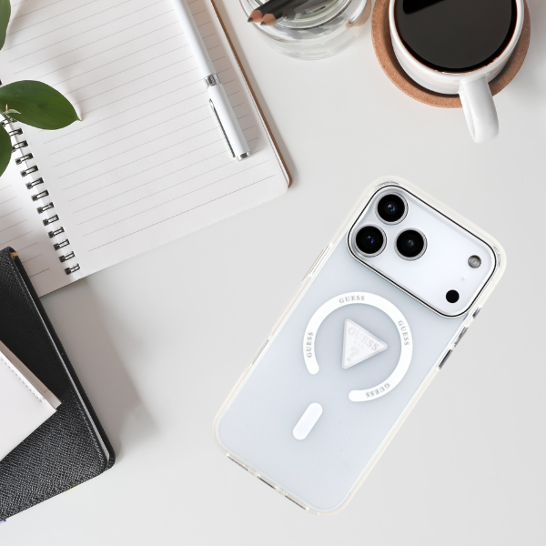 Carcasa Guess IML Gradient Triangle Logo cu MagSafe compatibila cu iPhone 17 Pro Max, Transparent Cod produs: GUE-166821