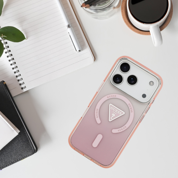 Carcasa Guess IML Gradient Triangle Logo cu MagSafe compatibila cu iPhone 17 Pro, Roz Cod produs: GUE-166912