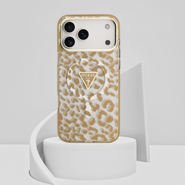 Carcasa Guess Leopard Glitter cu MagSafe compatibila cu iPhone 17 Pro, Maro Cod produs: GUE-166784