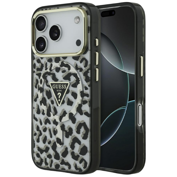 Carcasa Guess Leopard Glitter cu MagSafe compatibila cu iPhone 17 Pro Max, Negru Cod produs: GUE-166789