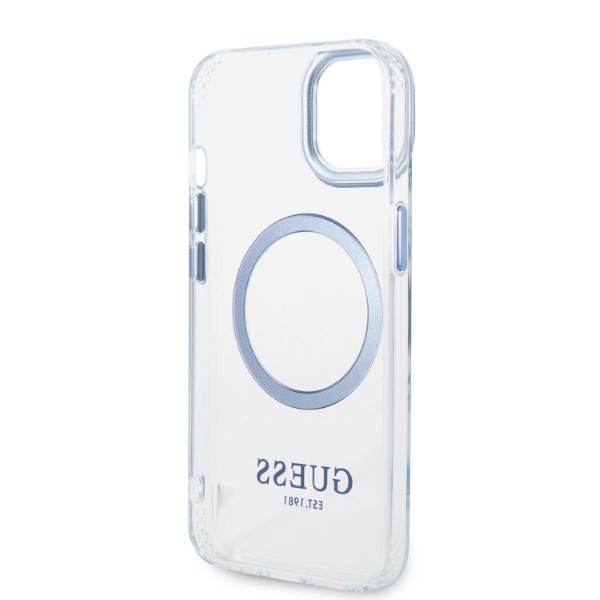 Carcasa Guess Metal Outline cu MagSafe compatibila cu iPhone 14 Plus / 15 Plus, Albastru