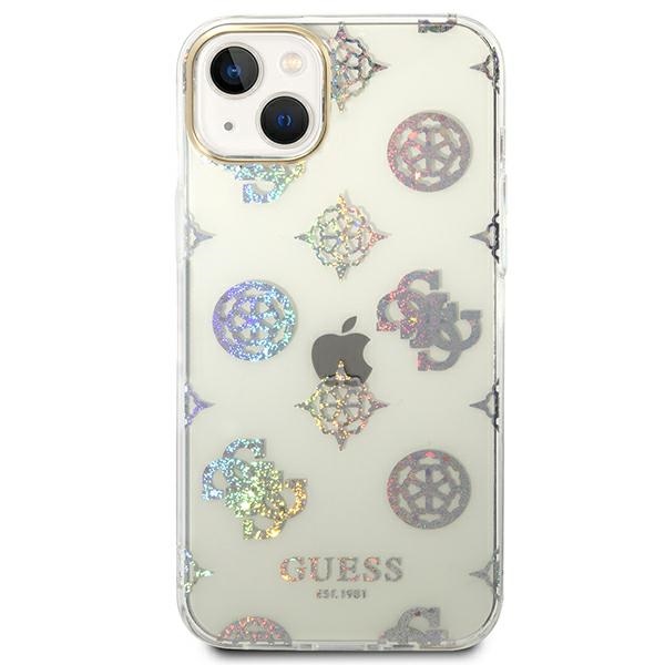 Carcasa Guess Peony Glitter compatibila cu iPhone 14 Plus / 15 Plus, Transparent Cod produs: GUE-178318