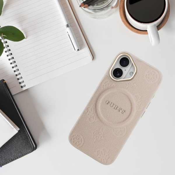Carcasa Guess Peony Hot Stamp cu MagSafe compatibila cu iPhone 17, Roz Cod produs: GUE-171501