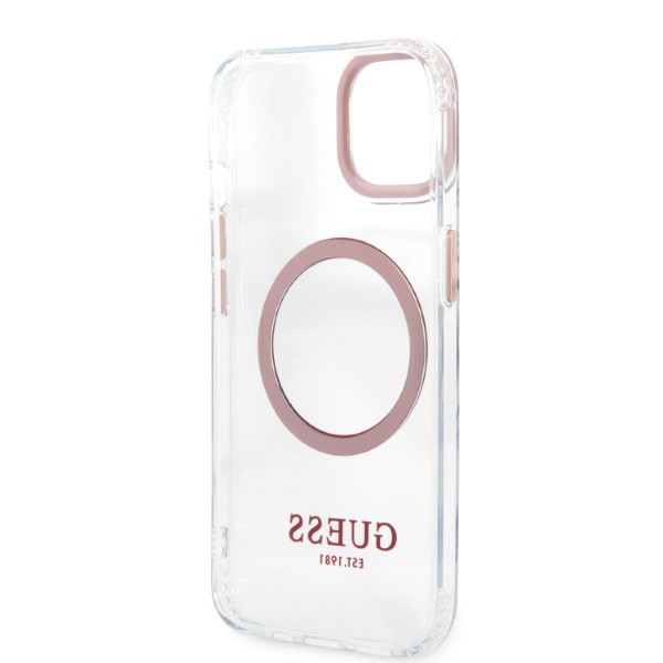 Carcasa Guess Pink Metal Outline cu MagSafe compatibila cu iPhone 13 / 14 / 15, Transparent Cod produs: GUE-173159