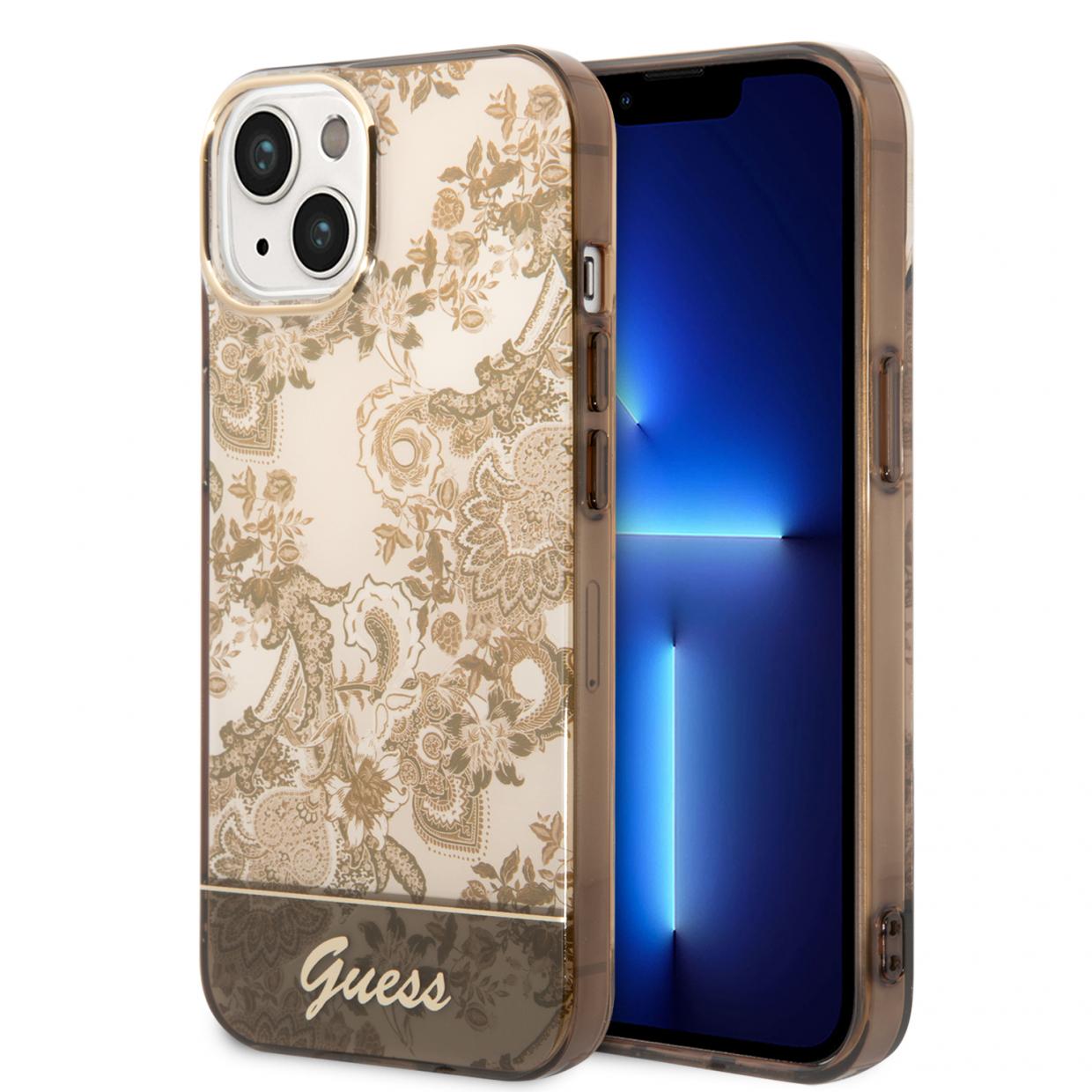 Carcasa Guess Porcelain Collection compatibila cu iPhone 14 Plus / 15 Plus, Maro Cod produs: GUE-178315