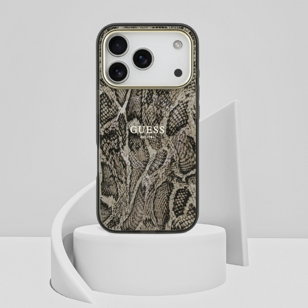 Această carcasă de protecție exclusivă de la renumita Guess este o combinație de eleganță și stil la cel mai înalt nivel. Carcasa este fabricată din policarbonat și poliuretan de înaltă calitate. Suprafața este împodobită cu un model animal care imită pielea de șarpe și logo-ul Guess, subliniind subtil prestigiul carcasei.