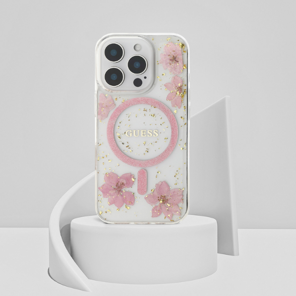 Guess Flori din rășină cu sclipici MagSafe