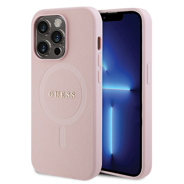 Carcasa Guess Saffiano cu MagSafe compatibila cu iPhone 13 Pro / 13, Roz