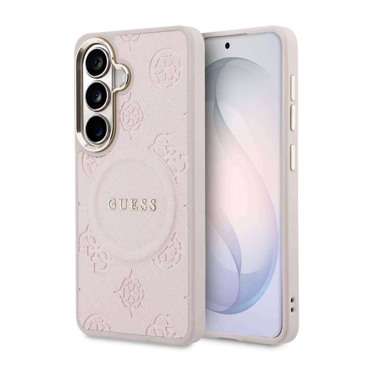 Carcasa Guess Saffiano Peony Embossed Ring cu MagSafe compatibila cu Samsung Galaxy S26 Plus, Roz