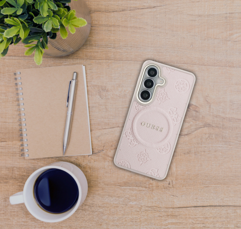 Carcasa Guess Saffiano Peony Embossed Ring cu MagSafe compatibila cu Samsung Galaxy S26, Roz Cod produs: GUE-178954