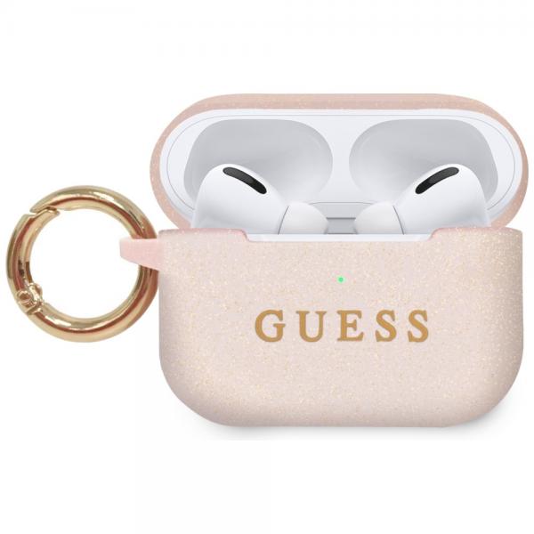 Carcasa Guess Silicone Glitter compatibila cu Apple AirPods Pro, Roz Cod produs: GUE-173783