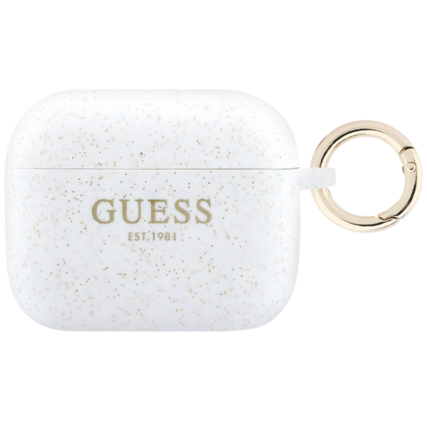 Carcasa Guess Silicone Glitter Ring compatibila cu Apple AirPods Pro 3, Alb
