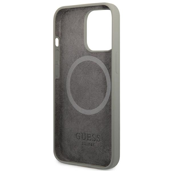Carcasa Guess Silicone Logo Plate cu MagSafe compatibila cu iPhone 13 Pro / 13, Gri