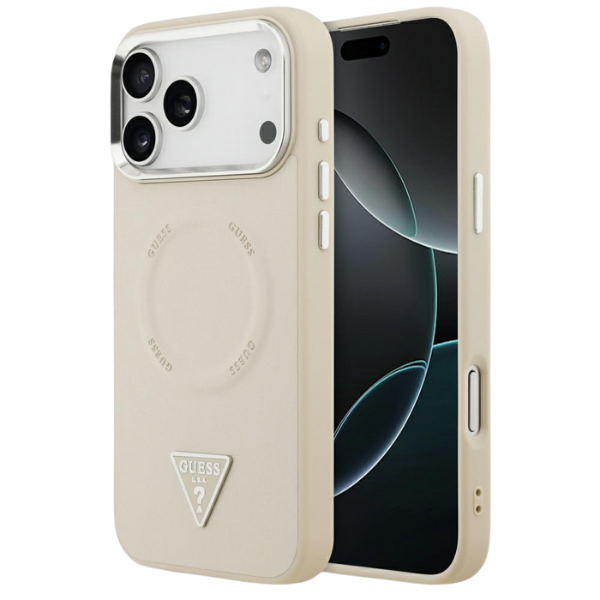 Carcasa Guess Triangle Logo cu MagSafe compatibila cu iPhone 17 Pro Max, Bej Cod produs: GUE-166202