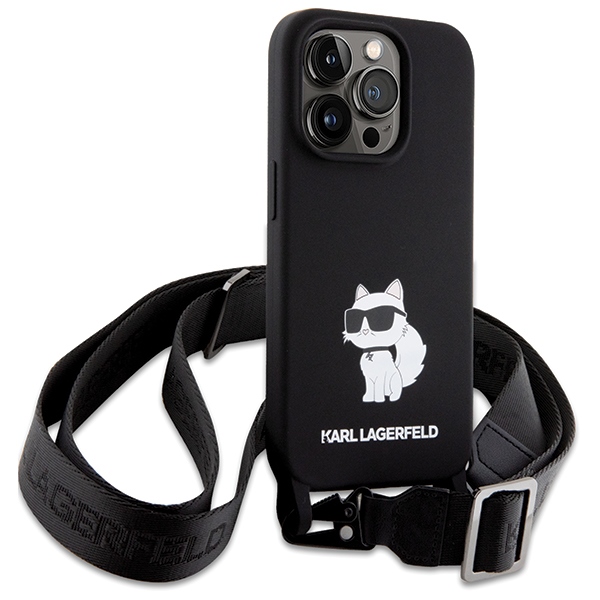 Carcasa Karl Lagerfeld Crossbody Silicone Choupette compatibila cu iPhone 15 Pro Max, Negru